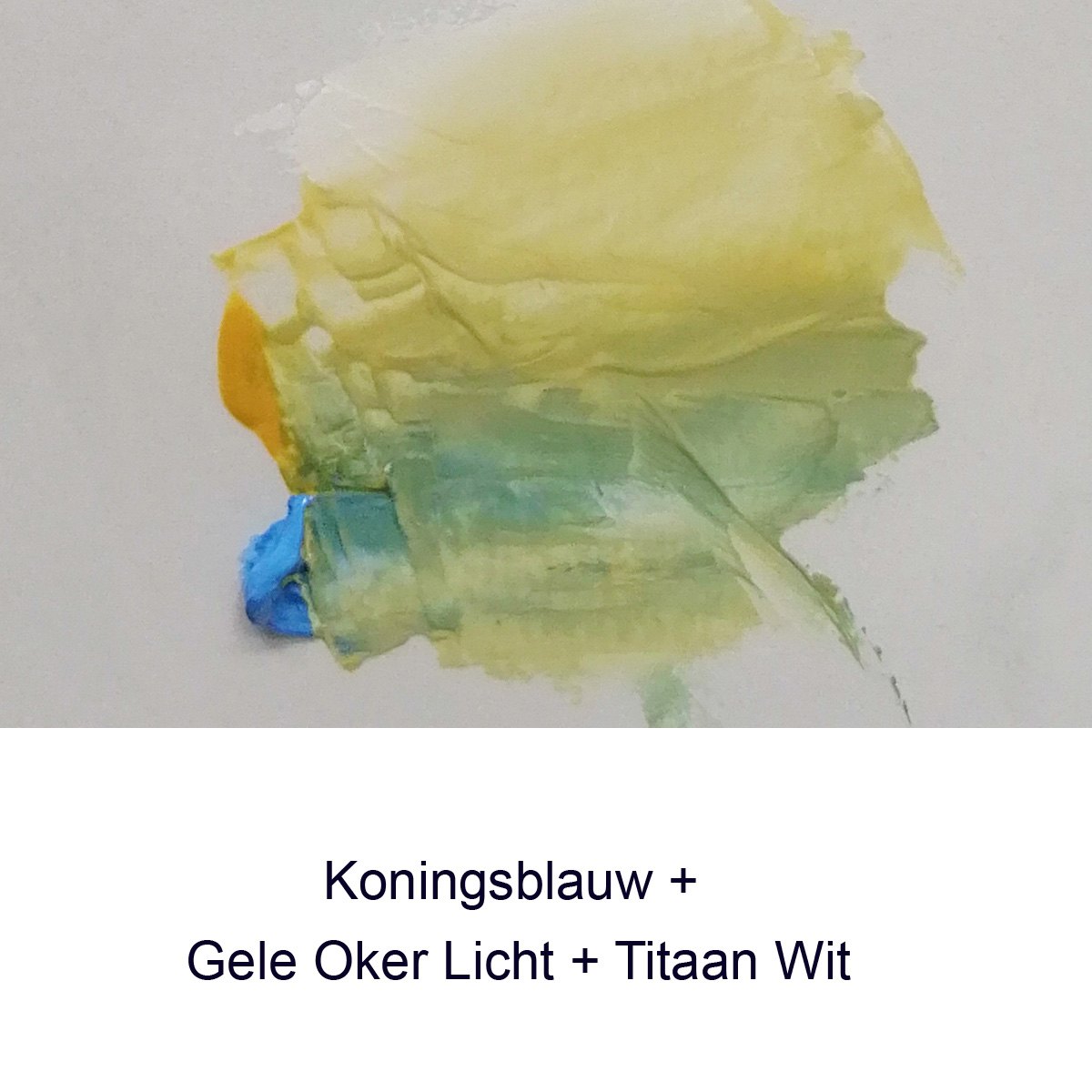 Bij het mengen met gele oker licht ontstaat er een pittig geel-groen tot blauw-groen. Prachtig voor een meer abstract werk.