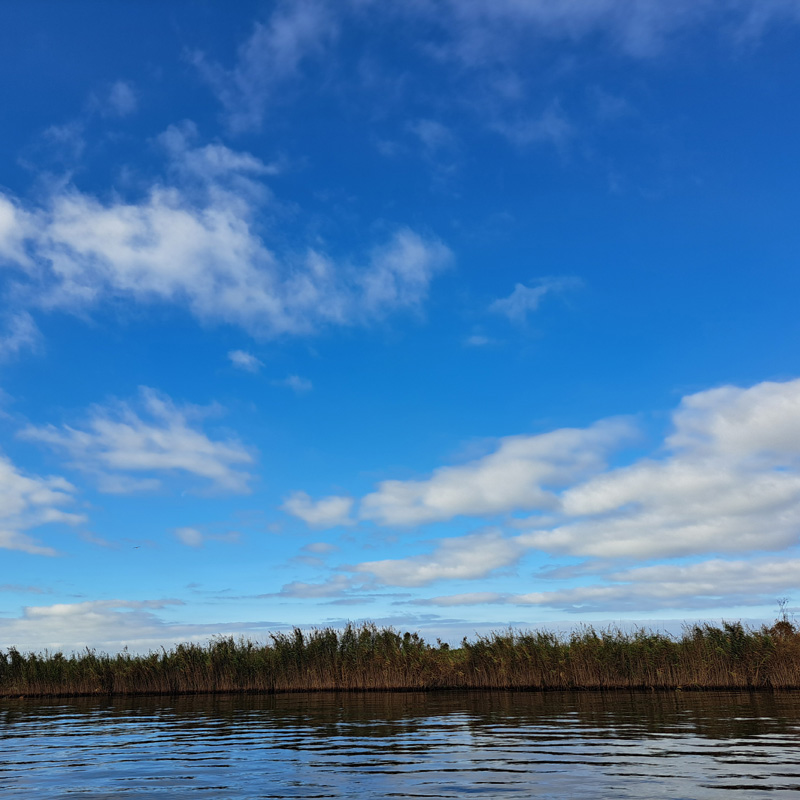 Welke kleur blauw kies je voor een mooie wolkenlucht. Die vraag is niet zo makkelijk te beantwoorden. Dat hele specifieke hemelsblauw is vanuit de beschikbare olieverven maar lastig te mengen. Hoog boven je is het blauw intenser, kleurrijker. Nabij de horizon wordt het blauw wat valer en neigt soms naar groenig.